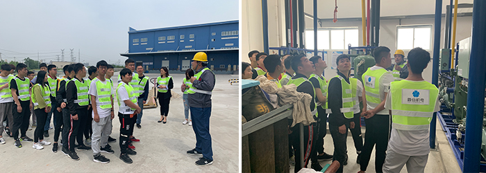 為了加強(qiáng)校企合作關(guān)系、強(qiáng)化學(xué)生的實(shí)踐經(jīng)驗(yàn)、拉近理論課程與實(shí)際施工的距離。5月6日,我司組織安徽糧食工程職業(yè)學(xué)院機(jī)電工程系學(xué)生到公司本部和即將竣工的生鮮傳奇配送中心冷庫(kù)工程現(xiàn)場(chǎng)參觀學(xué)習(xí)。